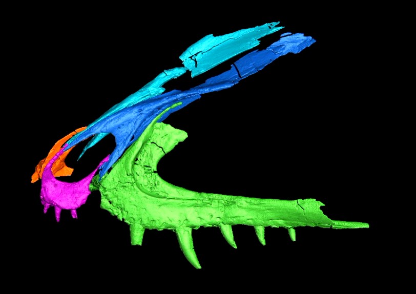 El reestudio de la colección de fósiles incluyó el análisis de restos del cráneo. “Tenía un hocico articulado, con partes muy delicadas. Es de la parte del cuerpo que más conocemos, porque del cuello para abajo no se tiene nada”, detalla von Baczko.